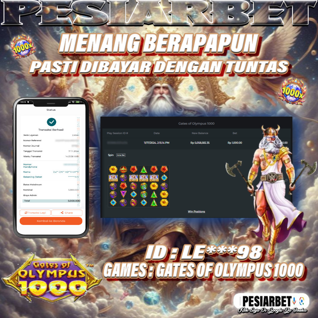 PESIARBET Bukti Kemenangan Slot GATES OF OLYMPUS 1000