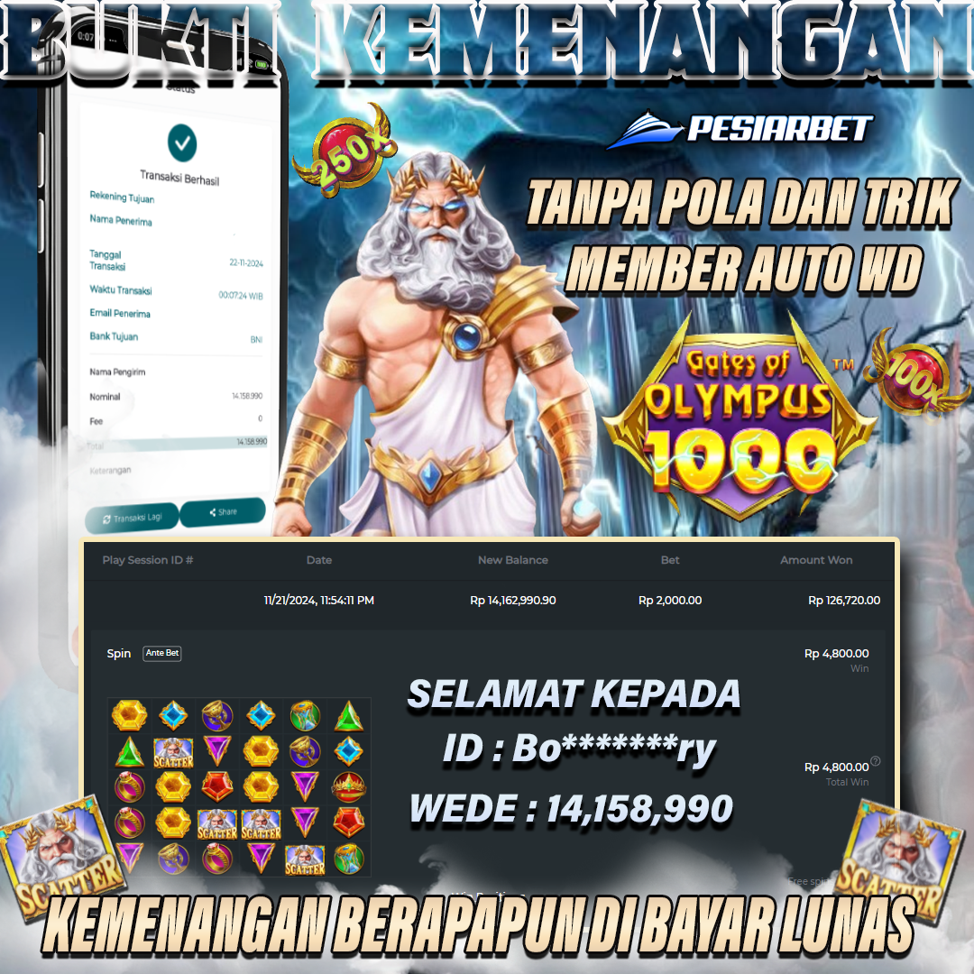 Bukti Kemenangan Slot PESIARBET Slot GATES OF OLYMPUS 1000