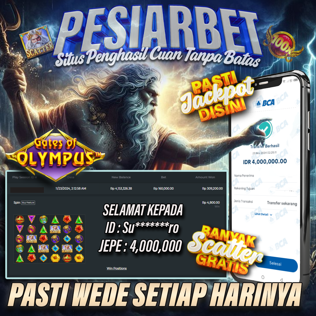 PESIARBET Bukti Kemenangan Slot GATES OF OLYMPUS 1000