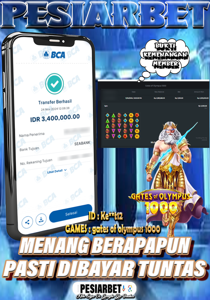 PESIARBET Bukti Kemenangan Slot GATES OF OLYMPUS 1000