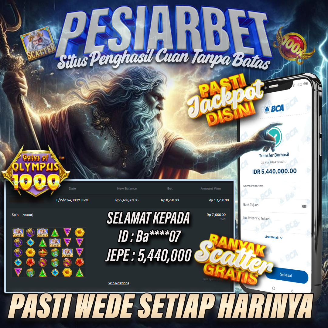 PESIARBET Bukti Kemenangan Slot GATES OF OLYMPUS 1000