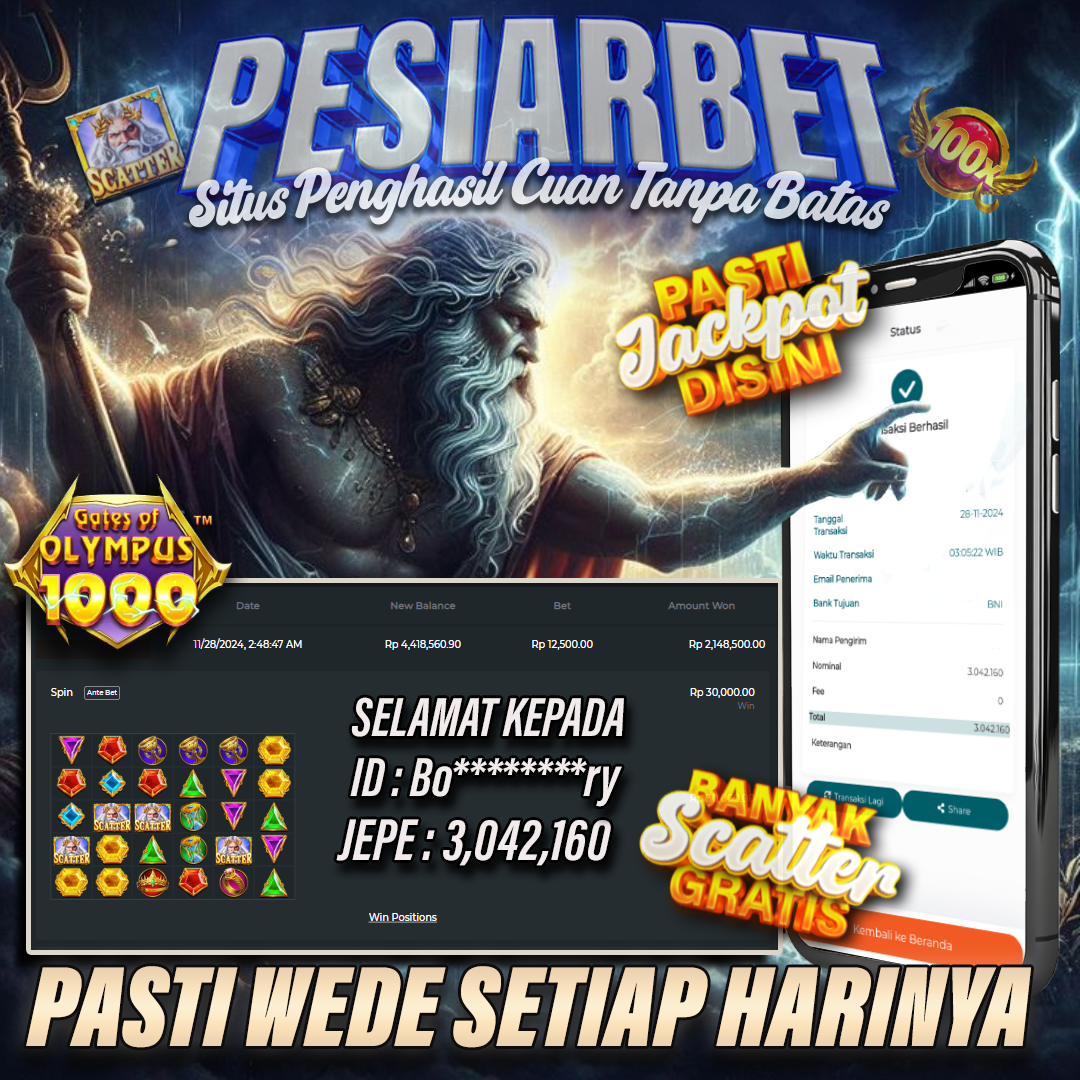 PESIARBET Bukti Kemenangan Slot GATES OF OLYMPUS 1000