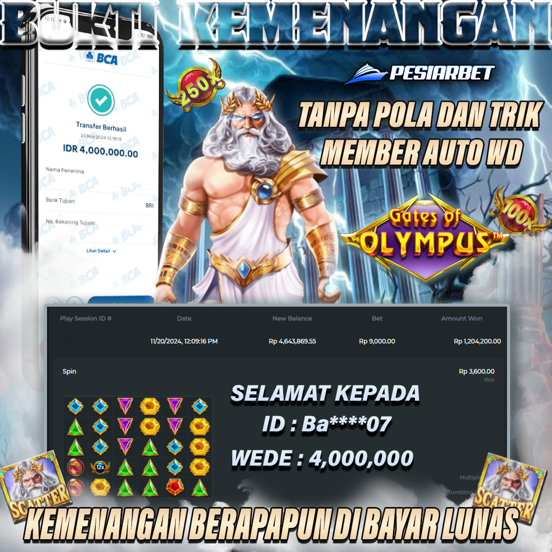 Bukti Kemenangan PESIARBET Slot GATES OF OLYMPUS