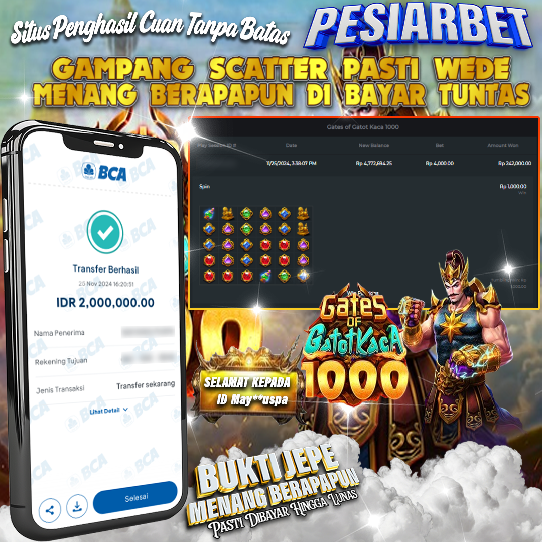 PESIARBET Bukti Kemenangan Slot GATOT KACA 1000
