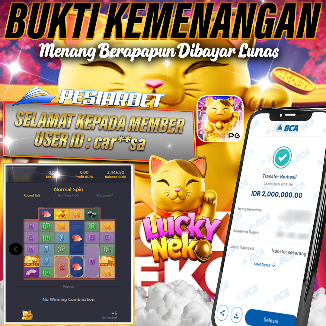 PESIARBET Bukti Kemenangan Slot LUCKY NEKO