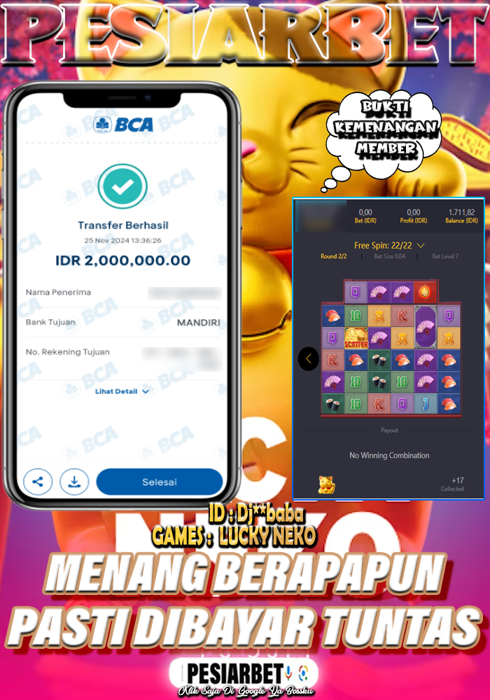 PESIARBET Bukti Kemenangan Slot LUCKY NEKO