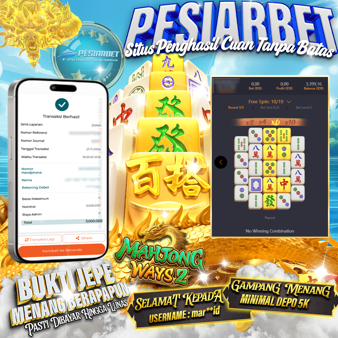 Selamat Kepada Id : mar**id Atas Withdraw Rp 3.000.000 Juta Hari ini. Ditunggu Withdraw Selanjutnya dan ajak juga teman temannya bergabung di Pesiarbet