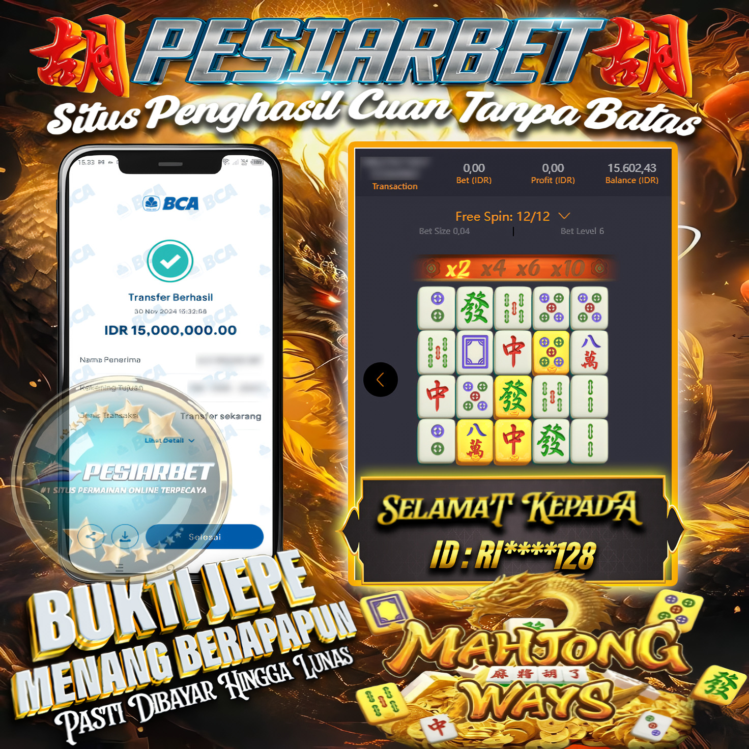 PESIARBET Bukti Kemenangan Slot MAHJONG WAYS