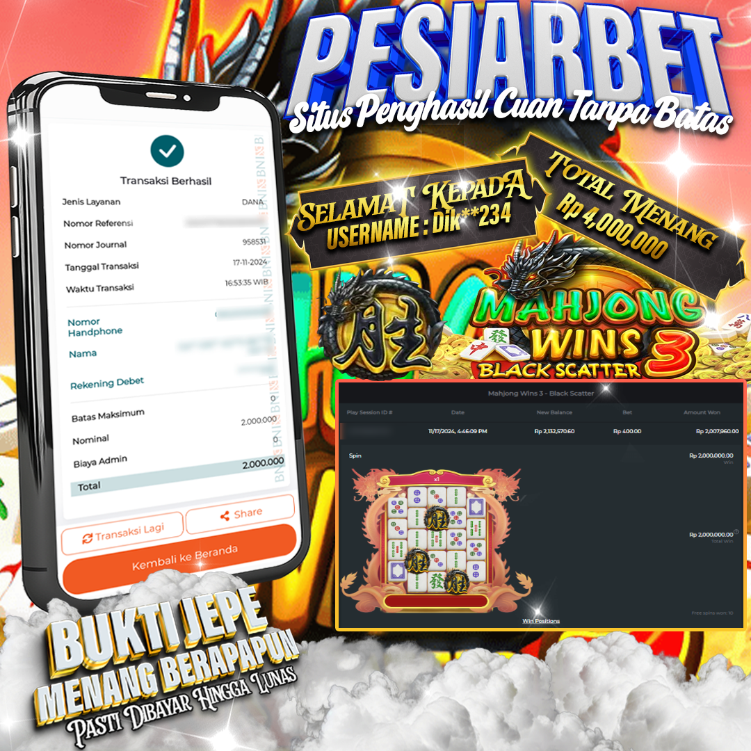 PESIARBET Bukti Kemenangan Slot MAHJONG WINS 3 – BLACK SCATTER