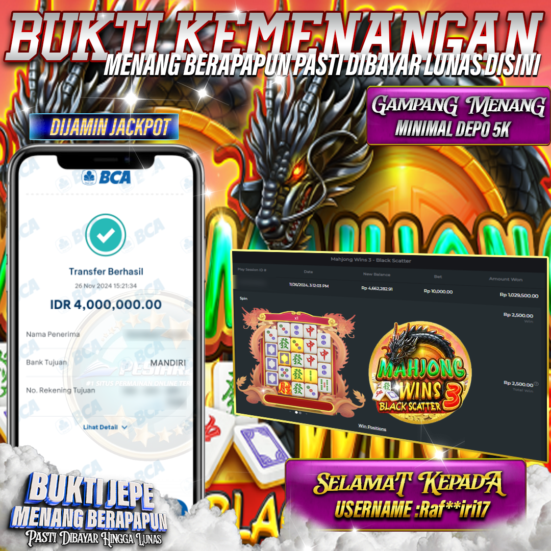 PESIARBET Bukti Kemenangan Slot MAHJONG WINS 3 – BLACK SCATTER