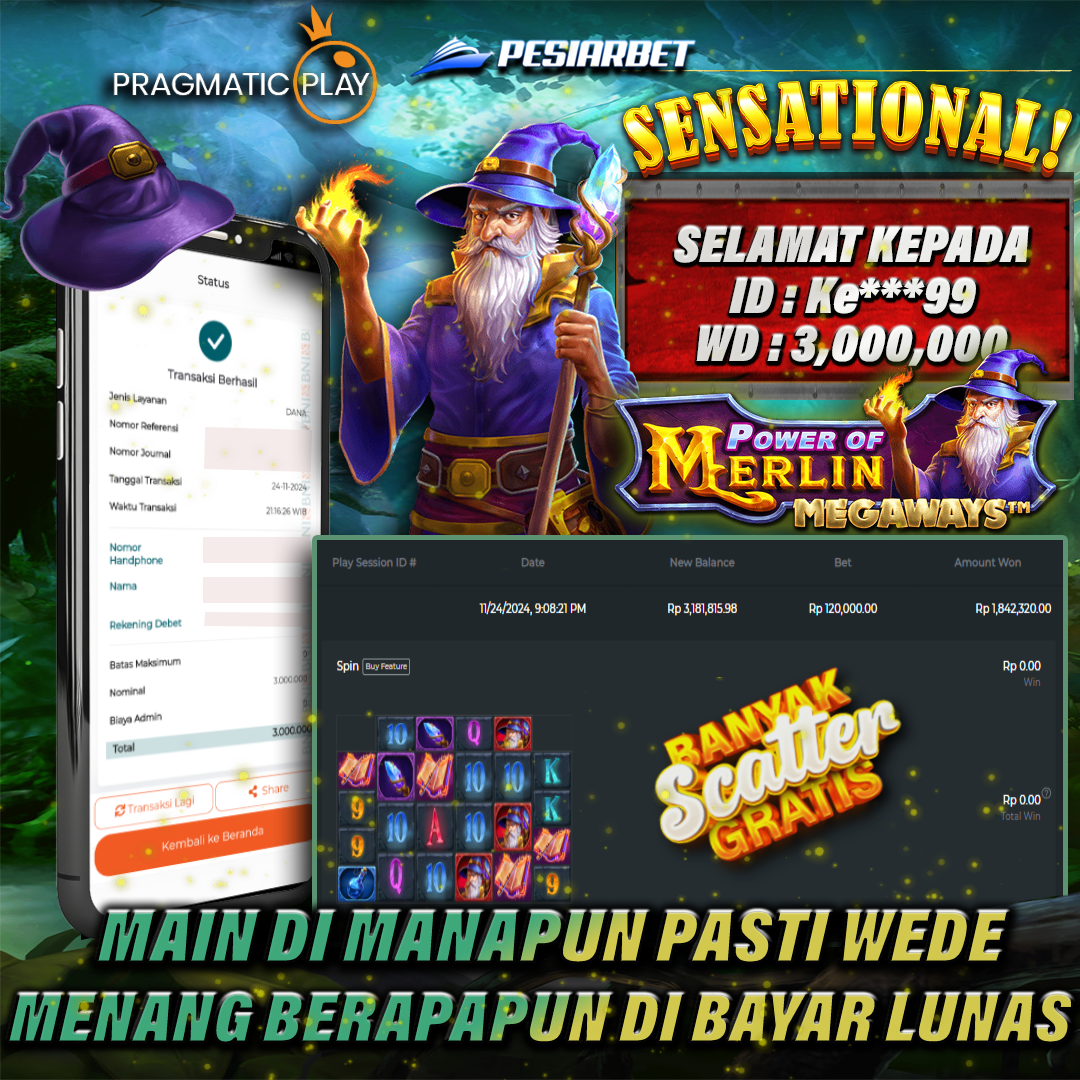PESIARBET Bukti Kemenangan Slot POWER OF MERLIN MEGAWAYS