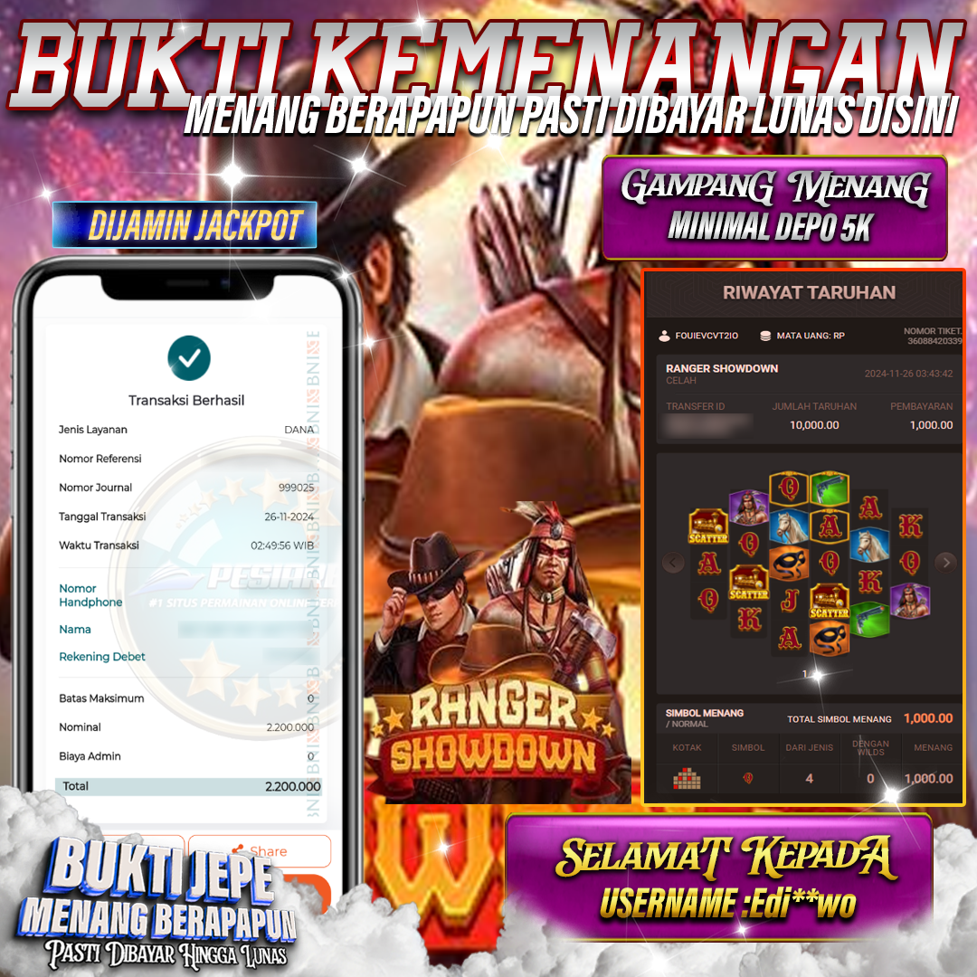 PESIARBET Bukti Kemenangan Slot RANGER SHOWDOWN