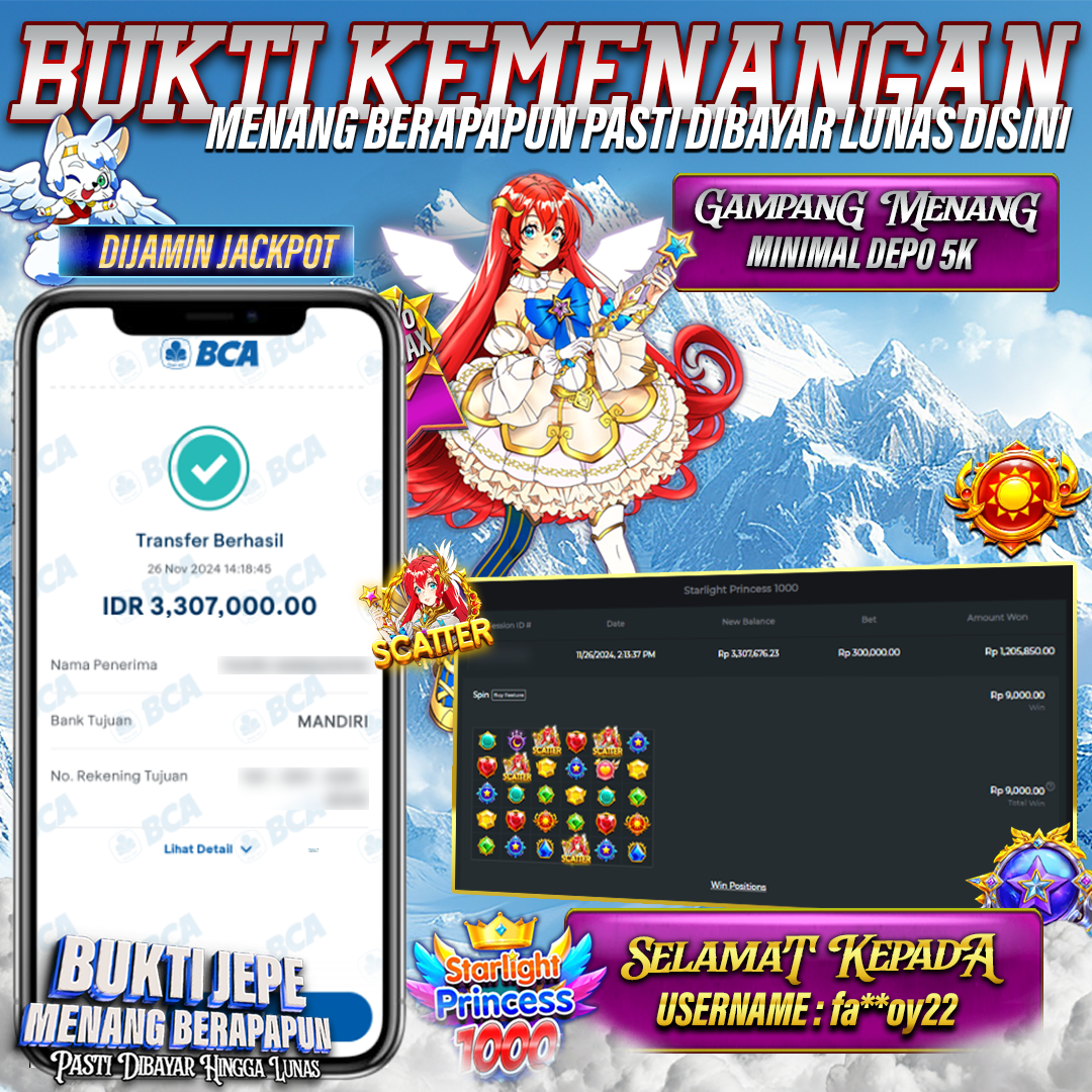 PESIARBET Bukti Kemenangan Slot STARLIGHT PRINCES 1000