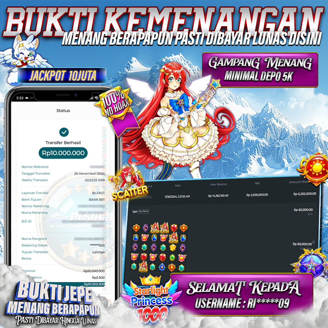 PESIARBET Bukti Kemenangan Slot STARLIGHT PRINCESS