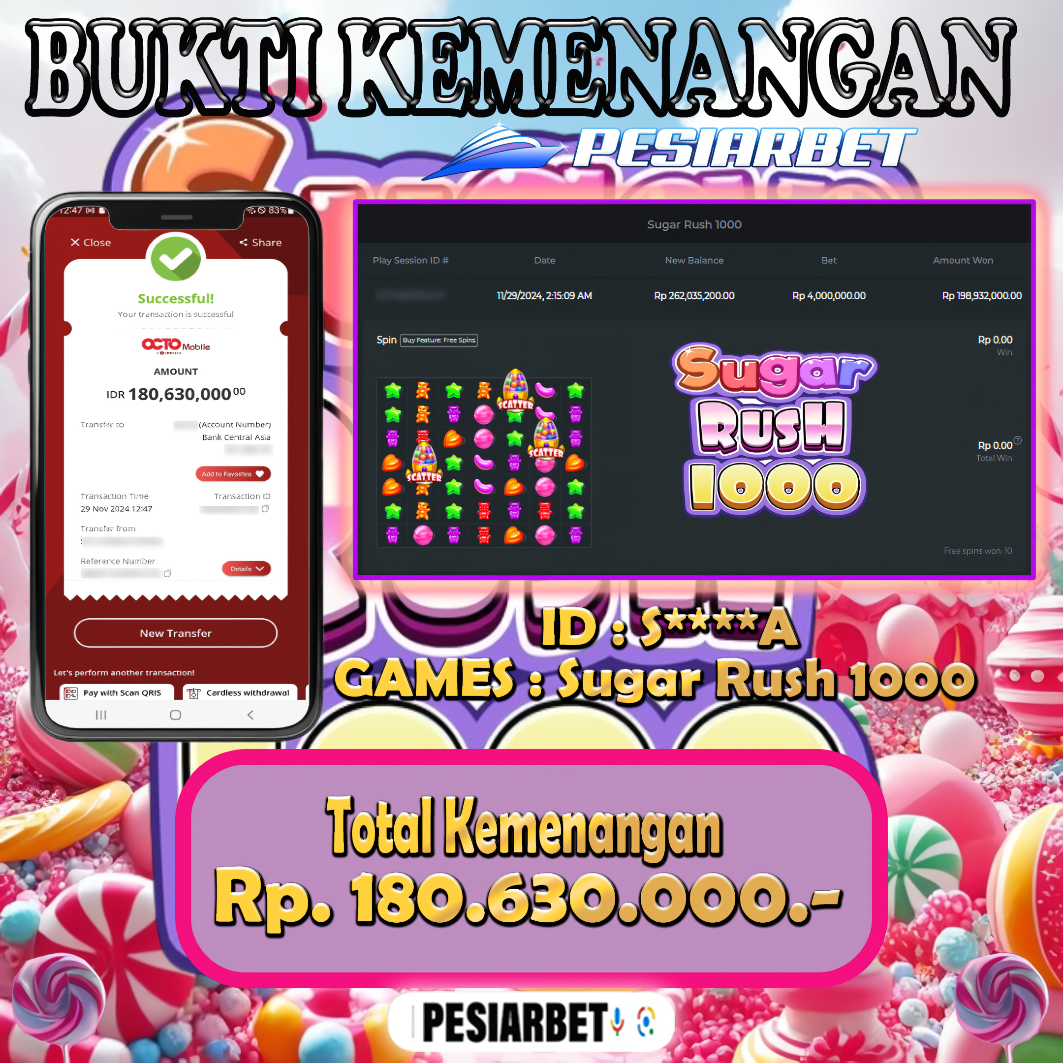 Selamat Kepada Id : S****A Atas Withdraw Rp 180.630.000 Juta Hari ini. Ditunggu Withdraw Selanjutnya dan ajak juga teman temannya bergabung di Pesiarbet