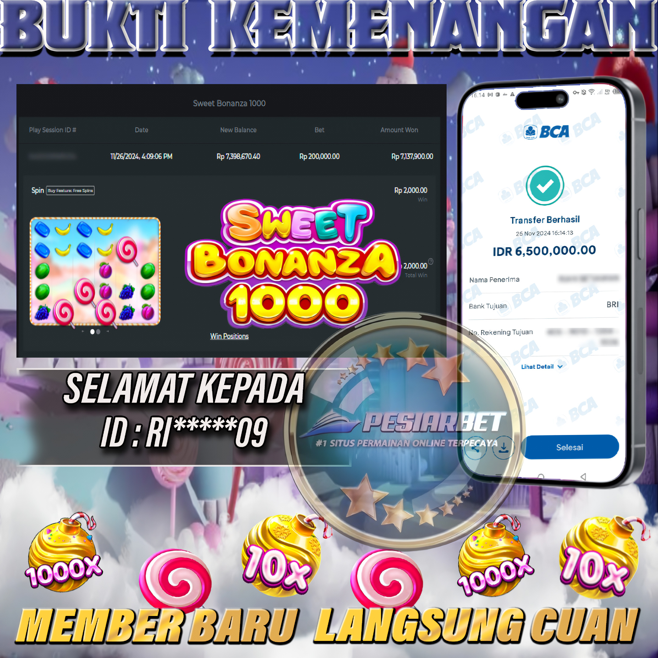 PESIARBET Bukti Kemenangan Slot SWEET BONANZA 1000