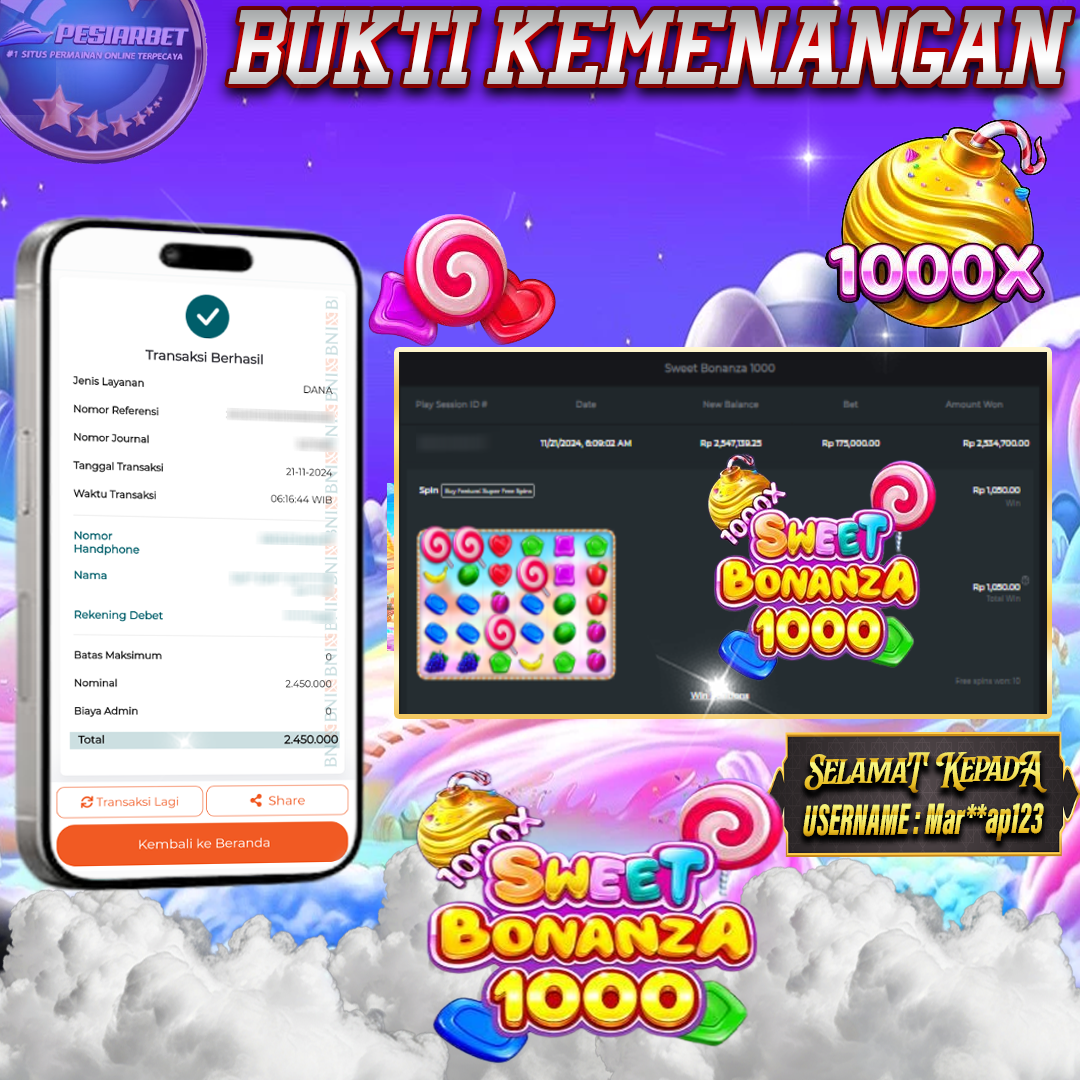 Bukti Kemenangan Slot SWEET BONANZA 1000